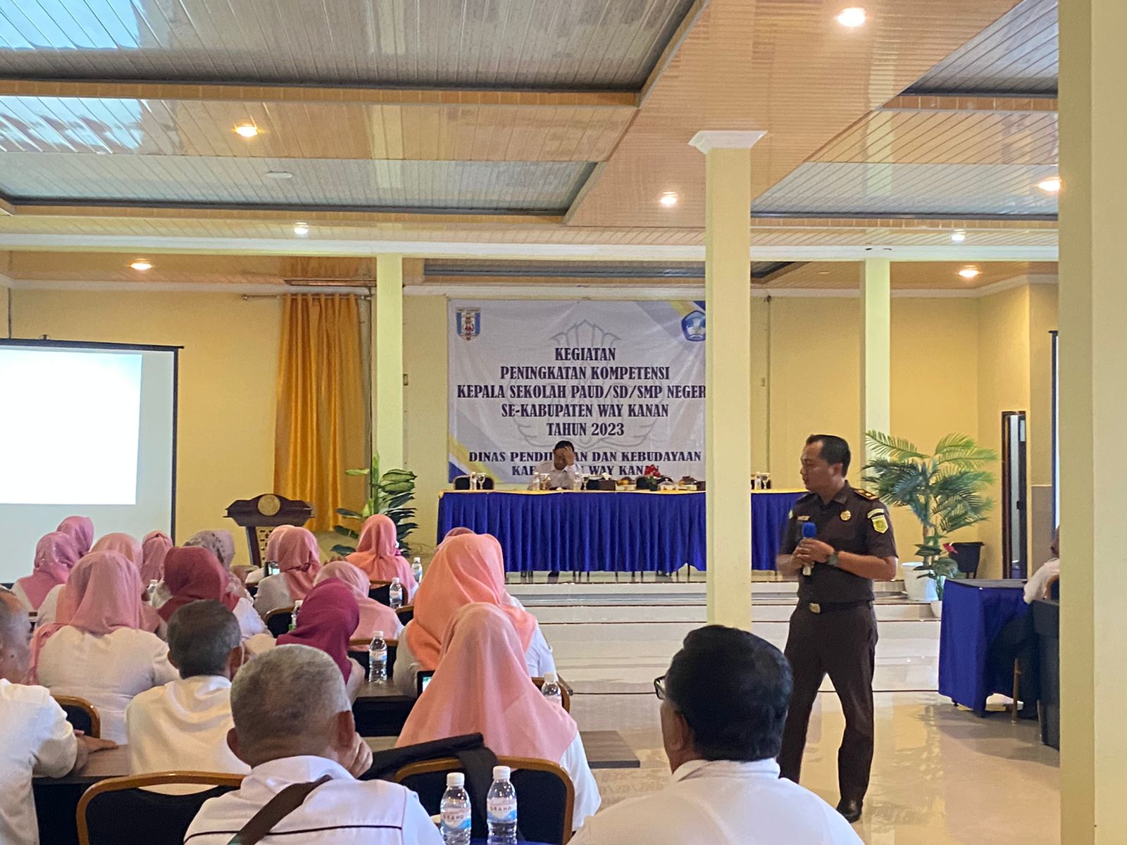 Bahwa Pada hari Kamis, tanggal 31 Agustus 2023, sekira pukul 09.00 Wib, telah dilaksanakan Pembinaan Kepala Sekolah Jenjang PAUD, SD, dan SMP Negeri Kabupaten Way Kanan Tahun anggaran 2023, yang bertempat di Hotel Grand Sinar Kampung Sidoarjo Kecamatan Umpu Semenguk, Kabupaten Way Kanan, dalam kegiatan tersebut Kepala Kejaksaan Negeri Way Kanan Dr. Afrillianna Purba, SH.,MH. yang diwakili oleh Kepala Seksi Intelijen Kejaksaan Negeri Way Kanan Rahmat Effendi, SH.,MH. menjadi narasumber yang memberikan materi yang bertemakan “Pengelolaan Dana Bos, Dana Dak dan Pengadaan Barang Dan Jasa Dengan Kaitannya Dalam Tindak Pidana Korupsi”.